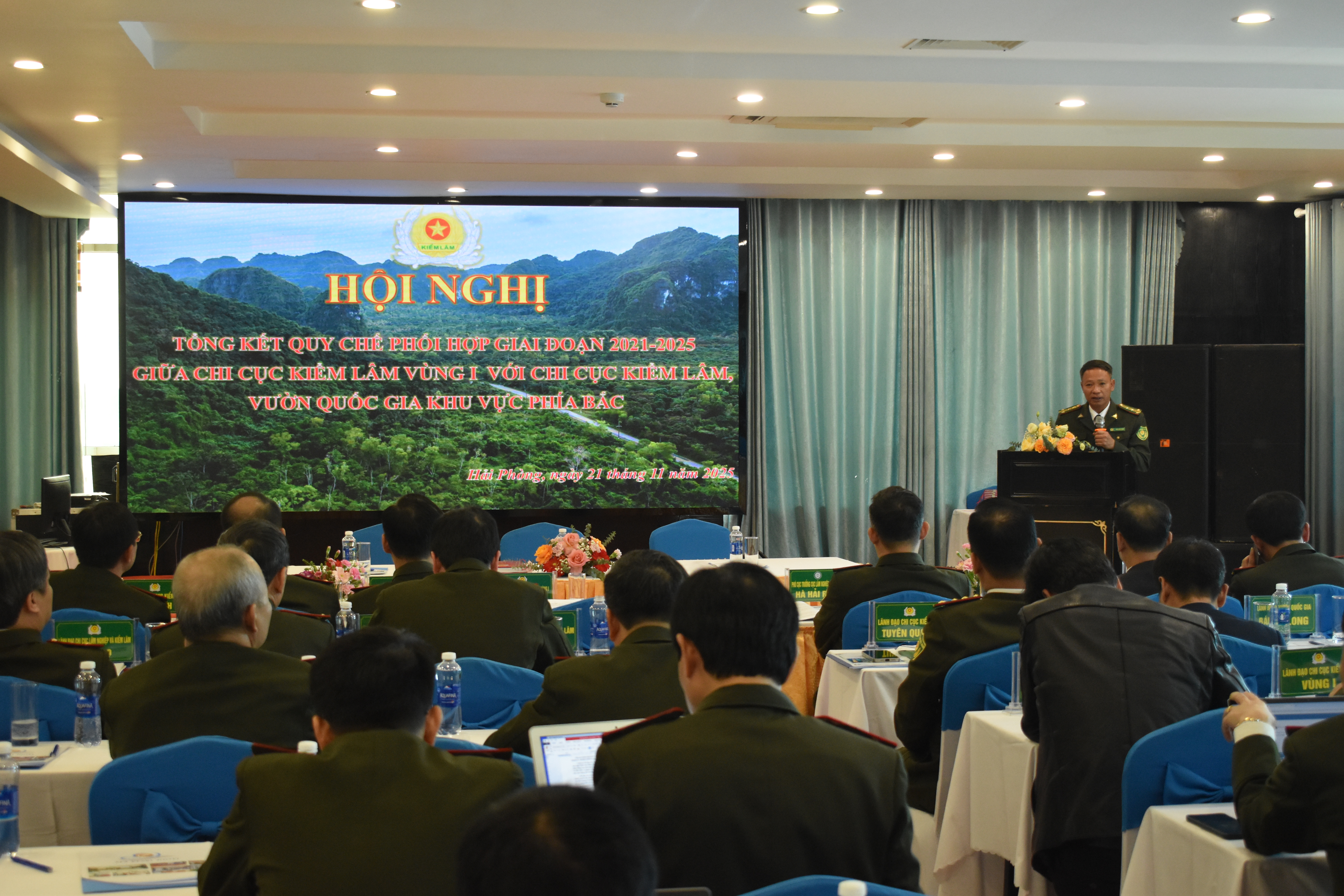 Phát biểu tại Hội nghi, ông Hà Hải Bình - Phó Cục trưởng Cục Lâm nghiệp và Kiểm lâm, Bộ Nông nghiệp và Môi trường ghi nhận, biểu dương, đánh giá cao tinh thần chủ động, linh hoạt của Chi cục Kiểm lâm Vùng I và lực lượng Kiểm lâm các tỉnh phía Bắc và kết quả đạt được trong giai đoạn 2021-2025: Số vụ vi phạm pháp luật lâm nghiệp giảm mạnh theo từng năm: từ 3.284 vụ năm 2021 xuống còn 1871 vụ năm 2025, giảm 43%; tình trạng phá rừng, cháy rừng - hai hành vi vi phạm phổ biến nhất - từng bước được kiểm soát, hạn chế xảy ra trên diện rộng; Nhiều mô hình phối hợp liên ngành - biên phòng - công an - chính quyền địa phương tỏ ra rất hiệu quả, nhất là tại Cát Bà, Hoàng Liên, Tam Đảo; Chi cục Kiểm lâm Vùng I giữ vai trò trục điều phối vùng.