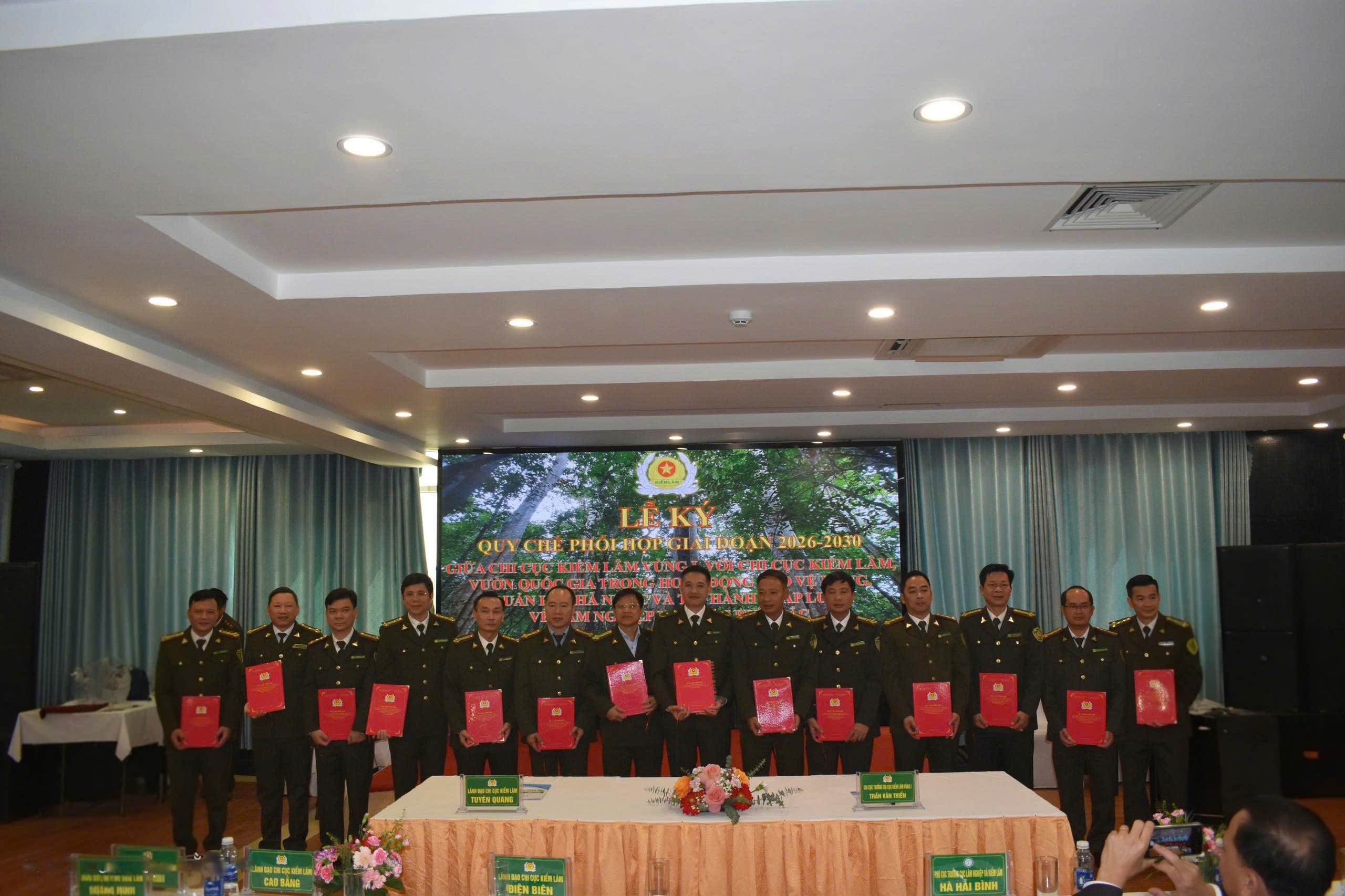 Kết thúc hội nghị, Chi cục Kiểm lâm Vùng I và đại diện 12 Chi cục Kiểm lâm tỉnh và 08 Vườn quốc gia đã tiến hành ký kết Quy chế phối hợp giai đoạn 2026-2030. Bản cam kết mới được kỳ vọng tạo dựng cơ chế phối hợp linh hoạt, hiệu lực và hiệu quả hơn, tăng cường trách nhiệm của người đứng đầu và củng cố kỷ cương trong công tác bảo vệ rừng.