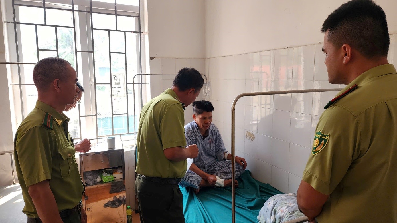Trong thời gian Đoàn công tác, thừa ủy quyền của Cục trưởng Cục Lâm nghiệp và Kiểm lâm, thay mặt lãnh đạo Cục, Đoàn công tác Chi cục Kiểm lâm Vùng I đã tổ chức thăm viếng, động viên thân nhân gia đình có người thiệt mạng; thăm hỏi, động viên những người bị thương khi tham gia chữa cháy rừng đang điều trị tại cơ sở y tế trên địa bàn xã Na Sang, tỉnh Điện Biên.